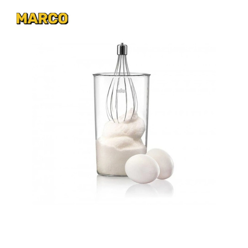 گوشتکوب برقی براون MQ 7045X خوش دست و زیبا مجهز به خردکن بزرگ برای خرد کردن یخ و مواد غذایی سفت است و خرد کن کوچک آن برای خردکردن سبزیجات آجیل ها پیاز و گوشت و غیره به کار می رود. در کنار این محصول همزنی به شکل بالون قرار دارد که از استیل ضد زنگ و مقاوم ساخته شده است و برای هم زدن سفیده تخم مرغ خامه و مایه کیک به کار می رود. هم چنین یک عدد پیمانه با درجه بندی برای خرد کردن مواد غذایی و یک پیمانه شفاف درجه بندی شده به همراه این گوشت کوب برقی است که می توانید بسته به نیازتان از آن ها برای اندازه گیری حجم مواد غذایی استفاده کنید.