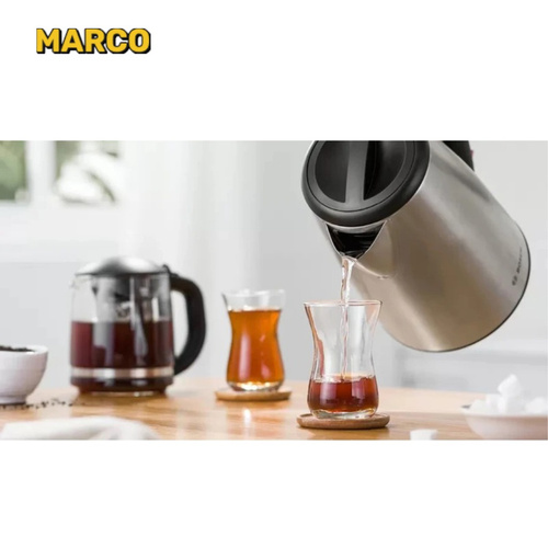 این دستگاه از طریق المنت حرارتی مخفی بر روی پایه گرم می شود، همچنین کفی داخلی کتری نیز از جنس استیل است باعث دوام و کیفیت بالای این دستگاه شده است. دکمه روشن / خاموش کردن چای ساز بوش TTA5603 در قسمت پایین دستگاه و دکمه گرم نگهدار در بالای دسته کتری قرار دارد. با عملکرد بهینه و قیمت متناسبی که دارد توانسته است در میان خریداران ایرانی اعتبار بسیار زیادی به دست آورد. شما برای خرید چای ساز مدل TTA5603 بوش میتوانید آن را از دومینو کالا سفارش بدهید و آن را همراه با گارانتی معتبر در کمترین زمان مناسب دریافت نمایید.